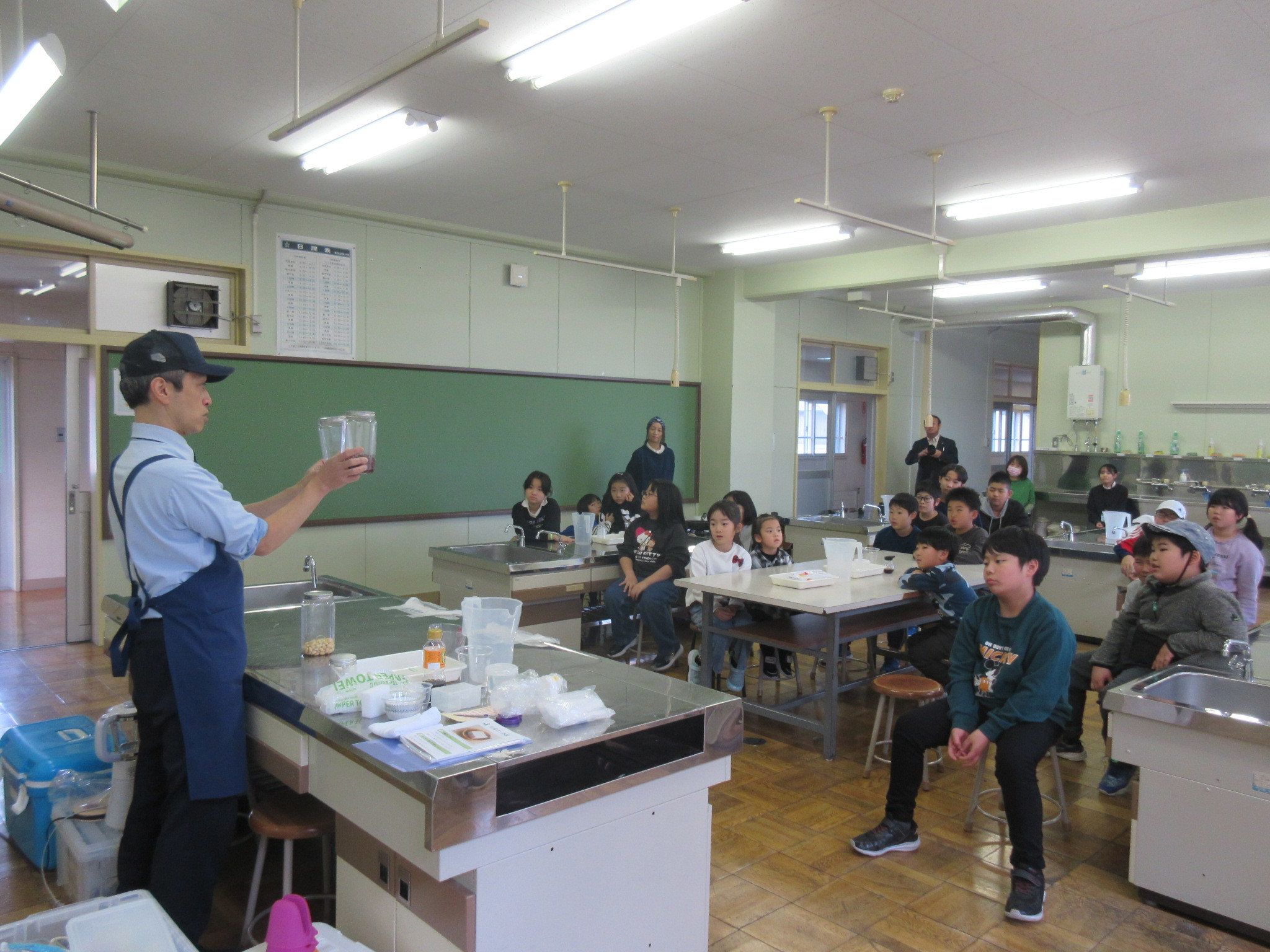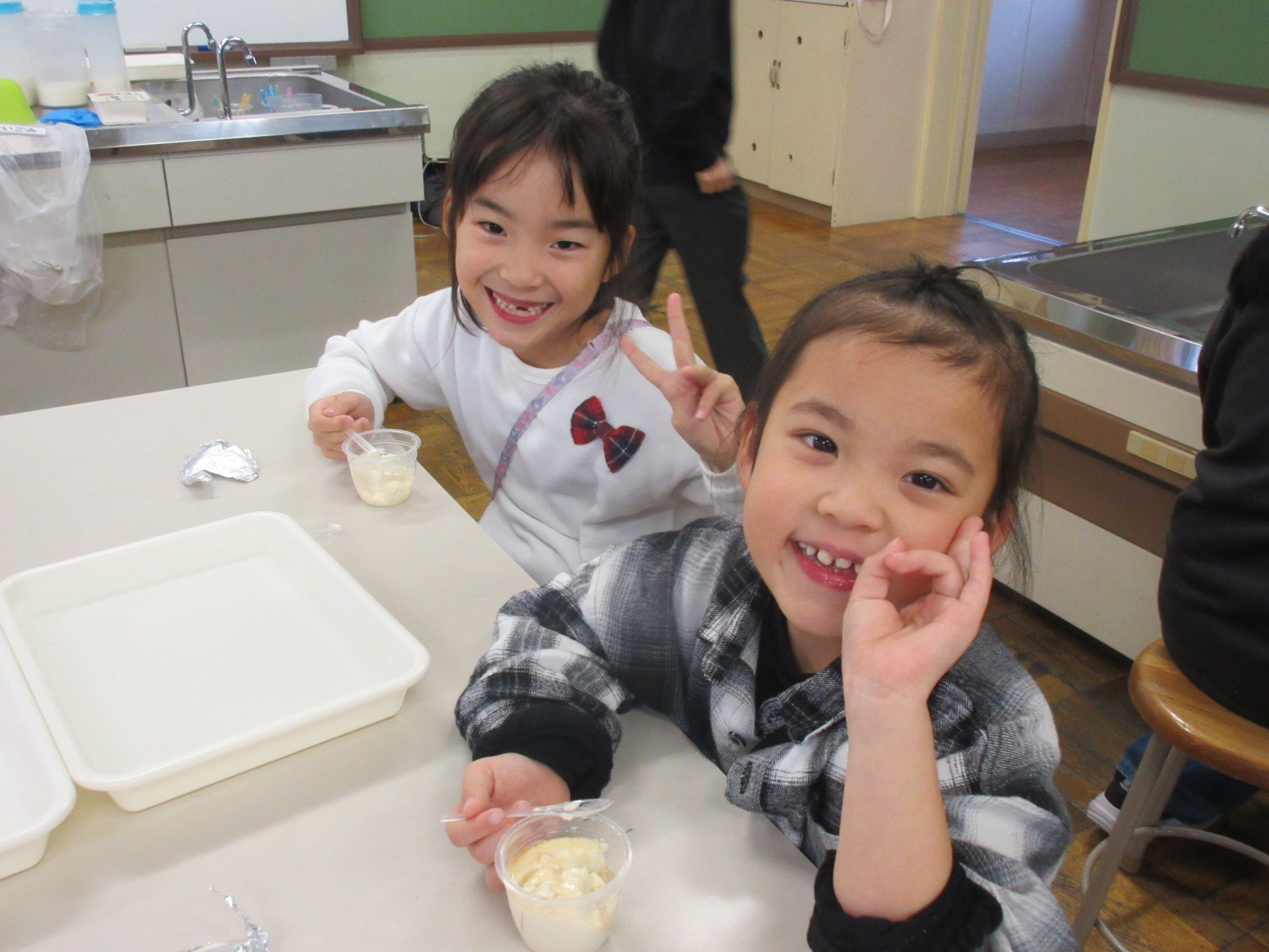 豆腐が苦手という子もいましたが、自分で作った出来立ての豆腐を食べると、「おいしい!」と嬉しそうにしていました。
