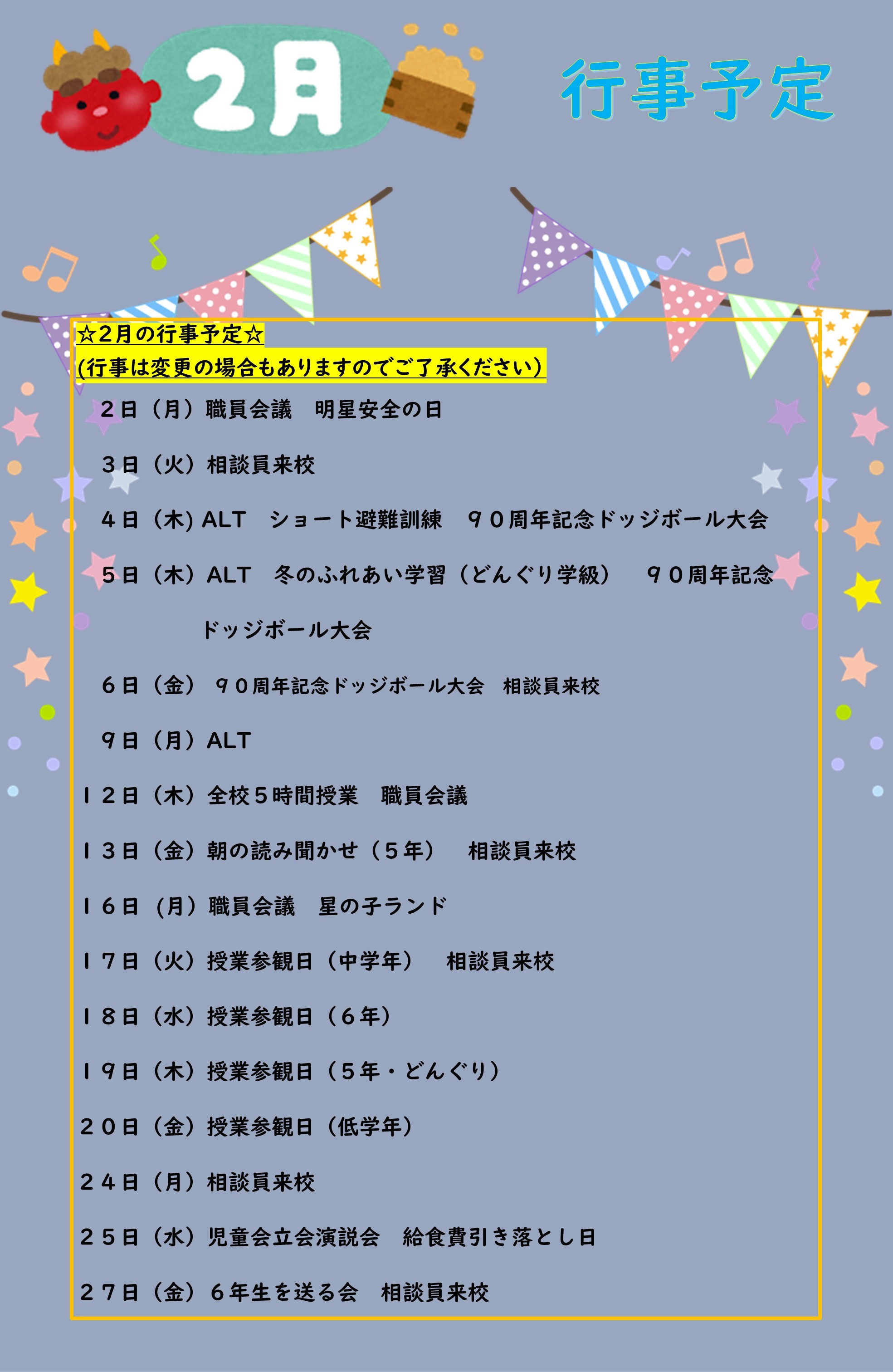 R8.2.4 「今日の星の子」・「学校だより」・「行事予定」更新しました。