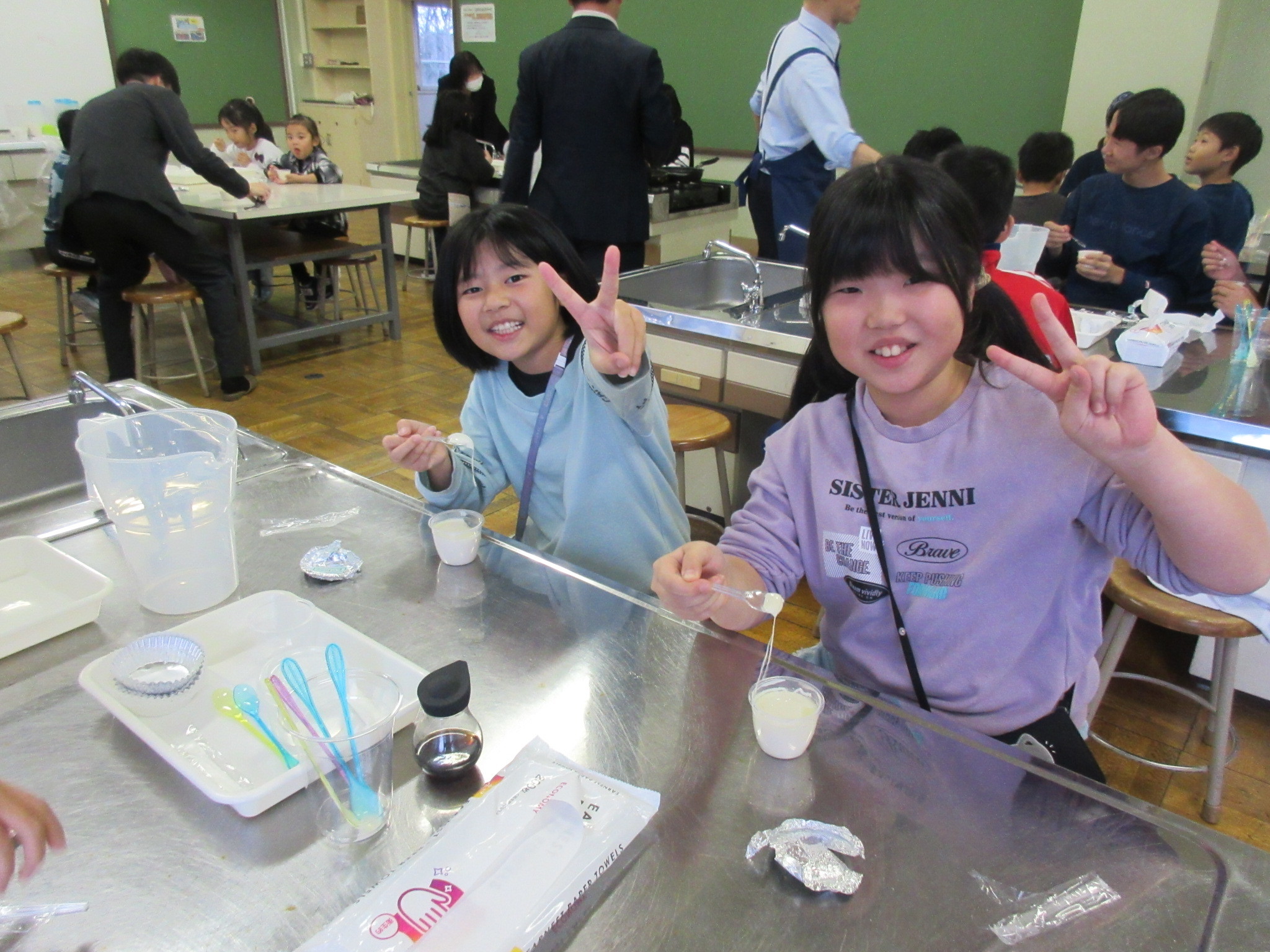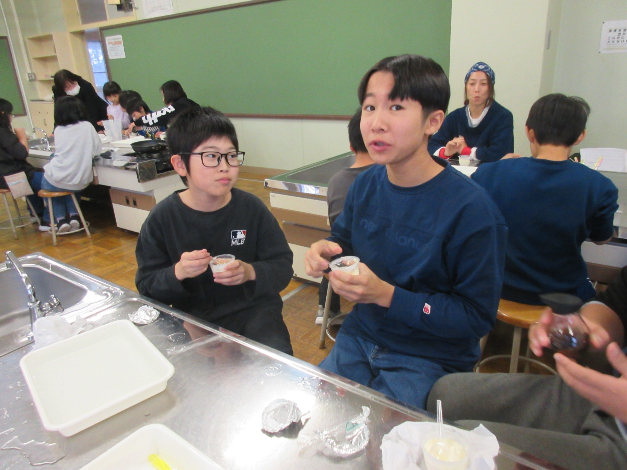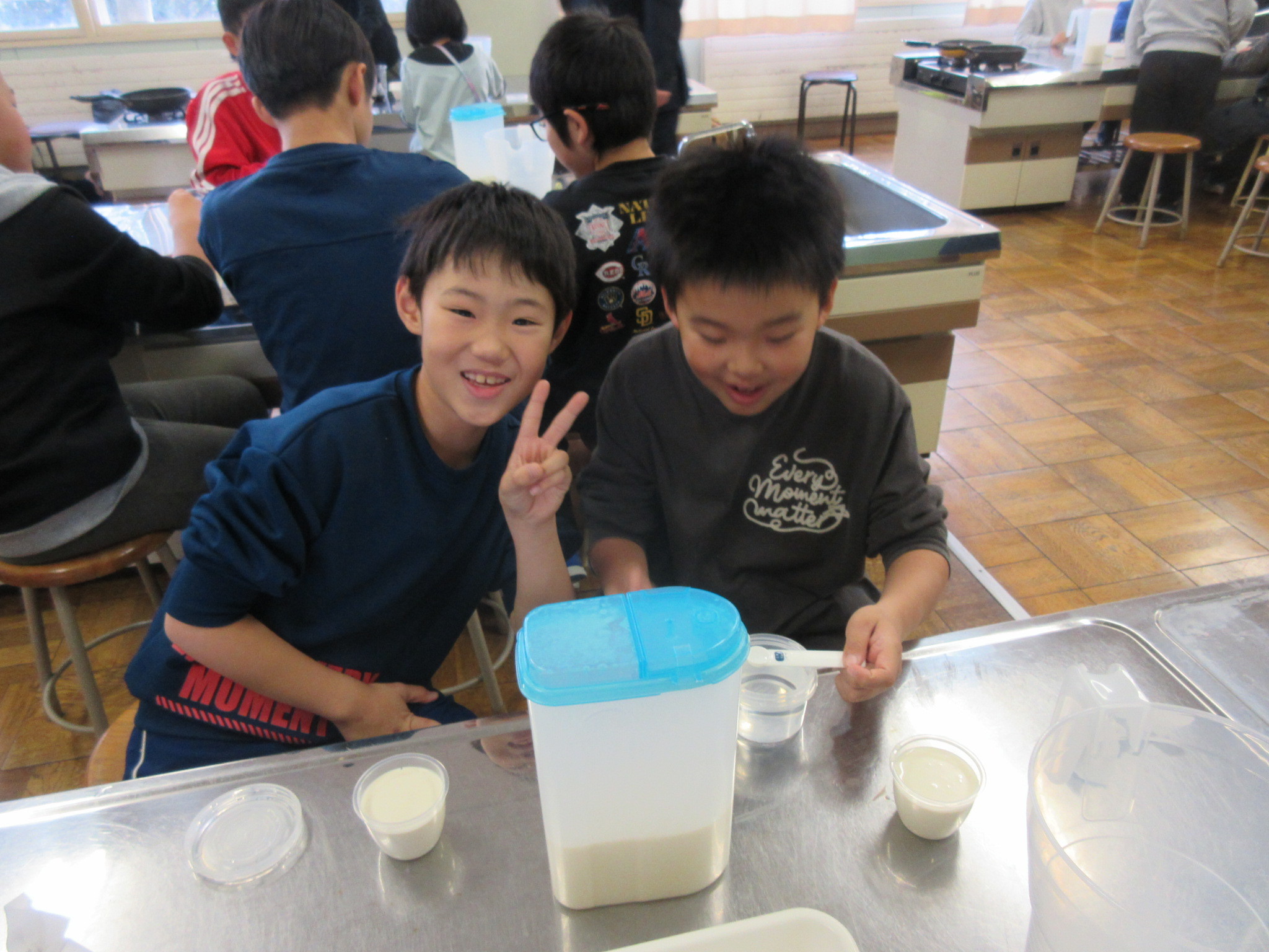 豆腐が苦手という子もいましたが、自分で作った出来立ての豆腐を食べると、「おいしい!」と嬉しそうにしていました。