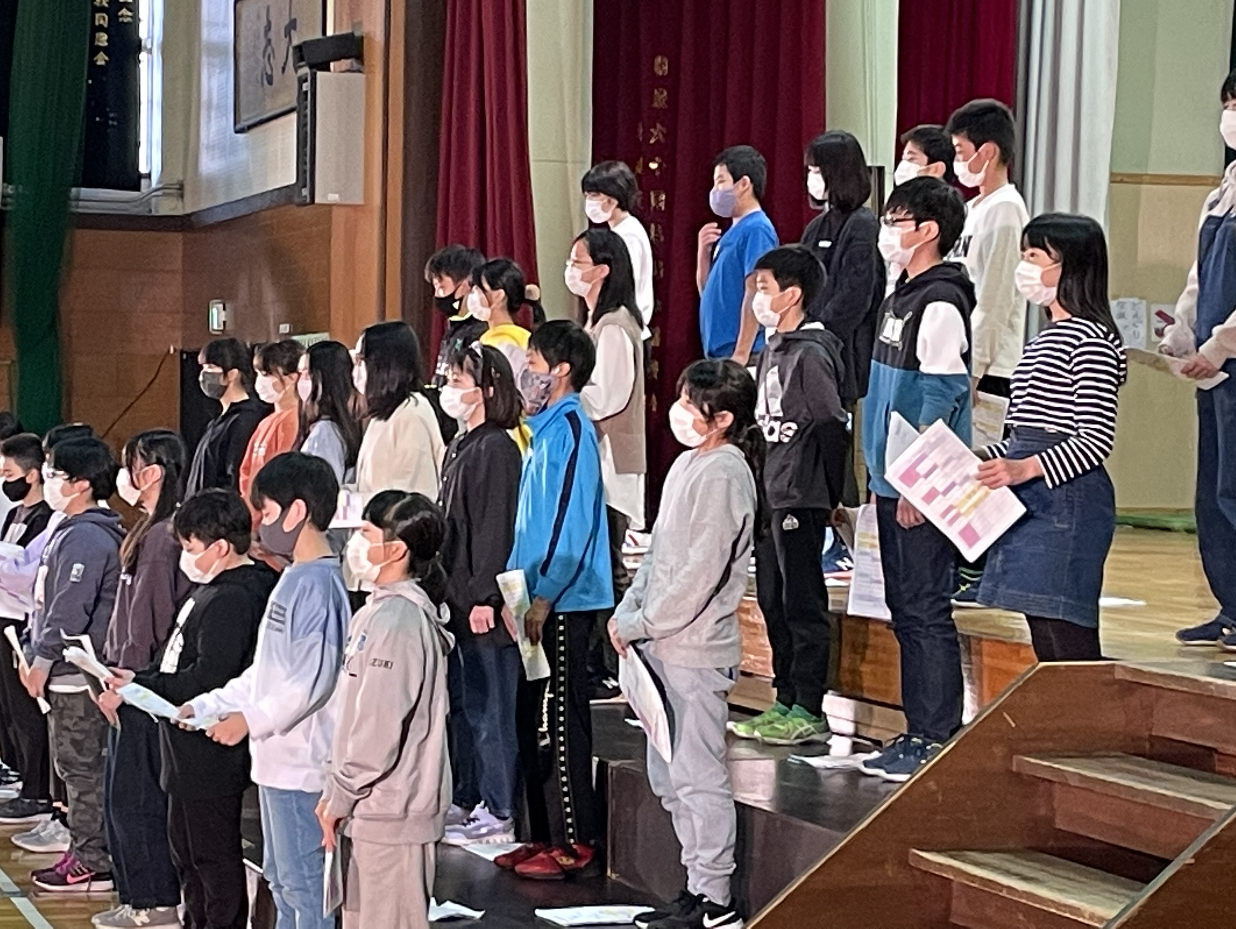 立派に発表することができました。「歌声ながれる学校」のキャッチフレーズに違わない素敵な歌声をどの学年も披露することができました。