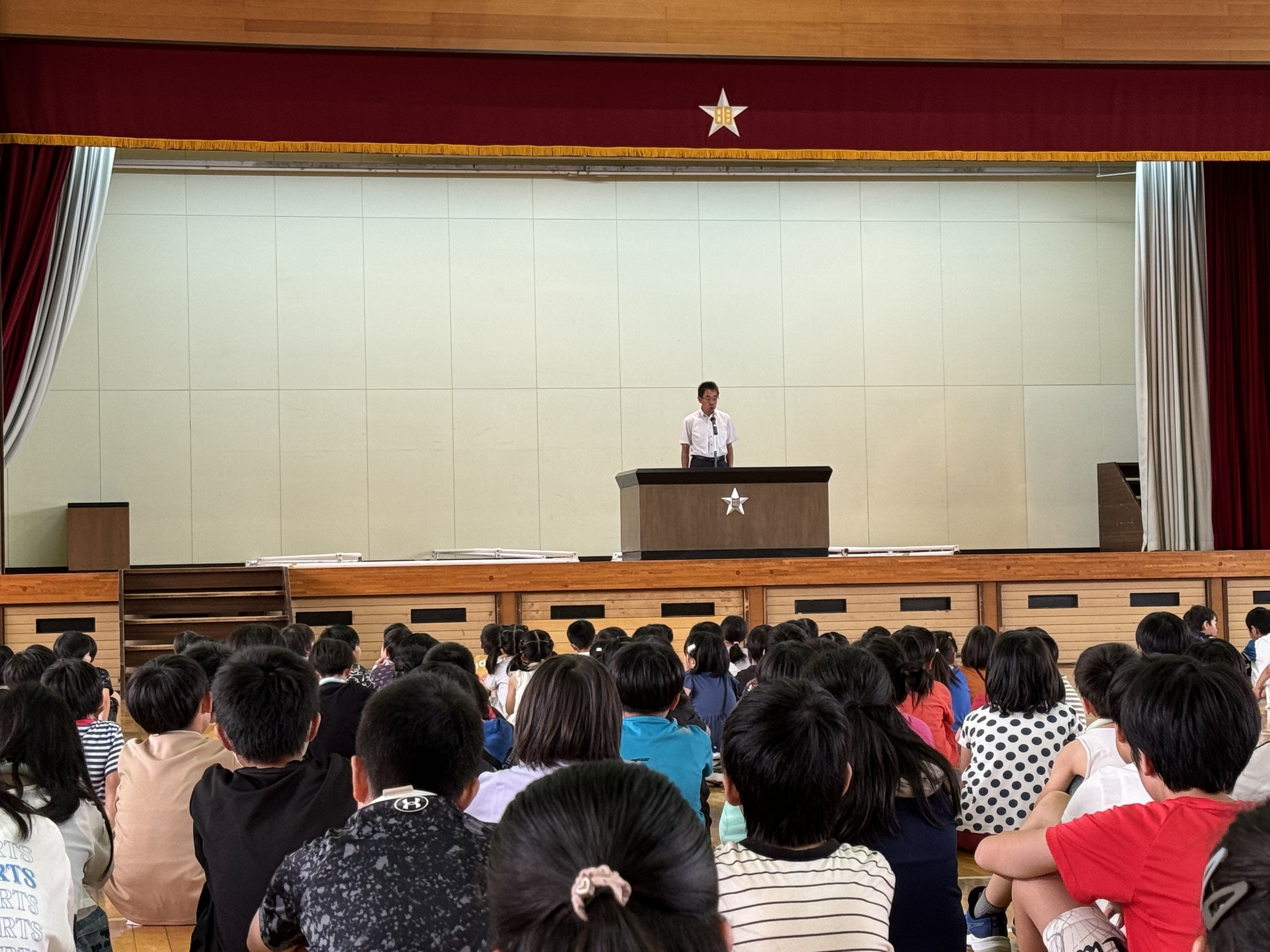 7月23日(火)、1学期の終業式を行いました。全校が体育館に集まり、校長先生・児童代表の話に続いて、「1学期の振り返りと夏休みの計画」などについて4名の児童が堂々と発表しました。