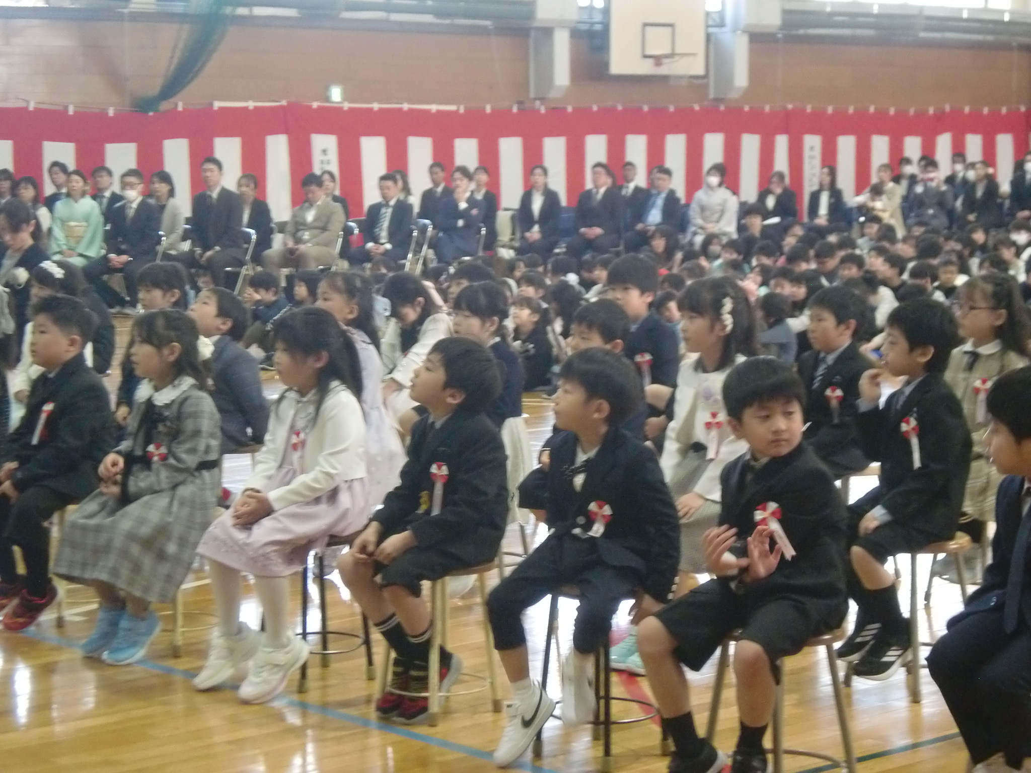 4月8日、第88回入学式が行われました。おうちの方に手を引かれ、ピカピカのランドセルを背負った1年生62名が明星小学校の仲間入りをしました。これから、多くのことを学んで大きく成長してくれることを楽しみにしています。