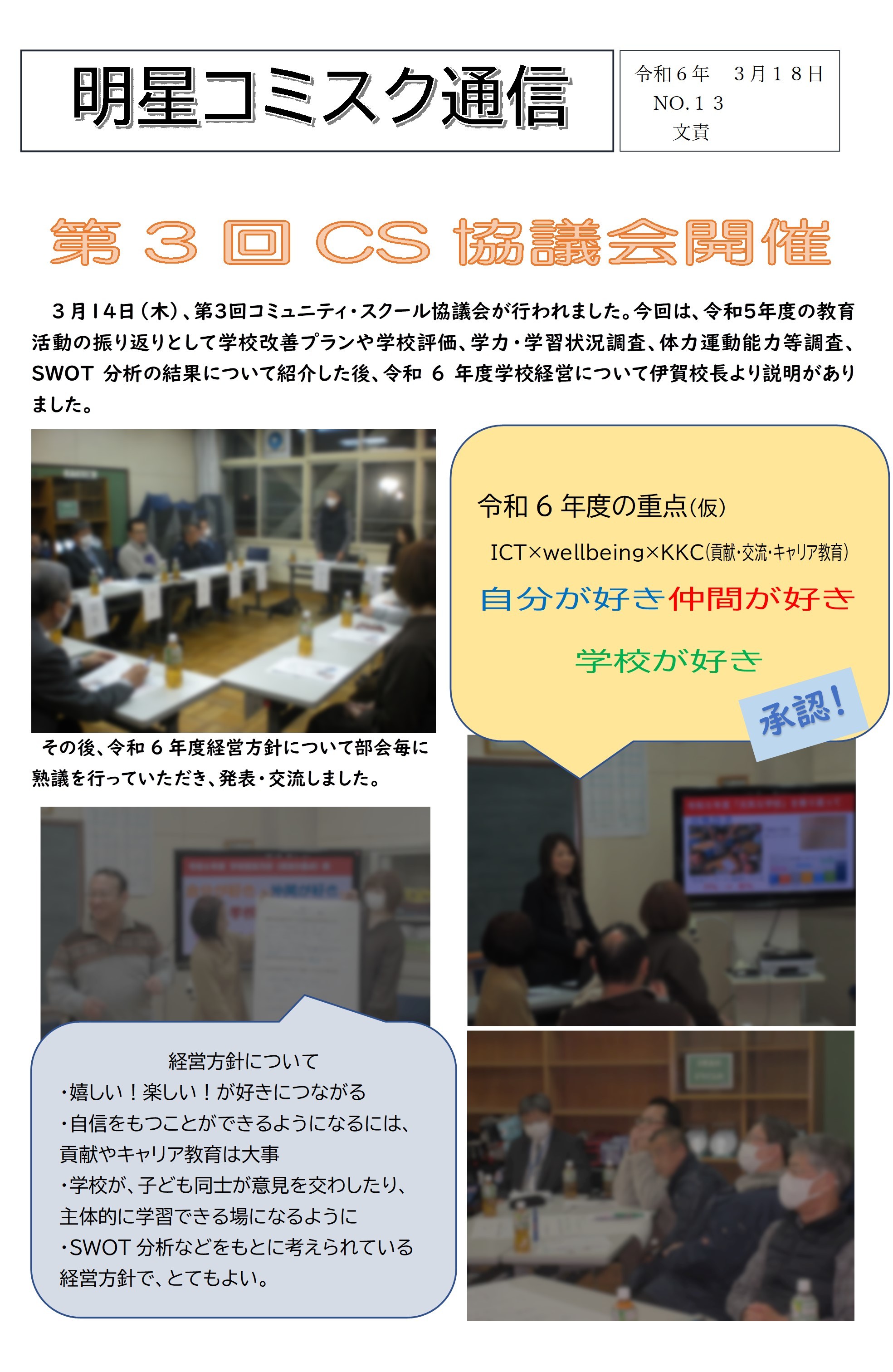 3月14日(木)第3回明星小学校CS協議会が開催されました!