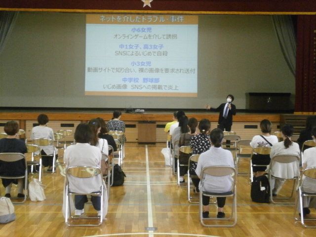 KDDI講師による親の携帯教室は,6割以上のおうちの方に参加していただきました。担外の先生による子どもの携帯教室では,一人一人がインターネットやSNSの危険性を自分事として捉え,大変真剣に学ぶ様子が見られました。帰宅後,親子で携帯電話の使い方やルールについて話すきっかけとなったようです。