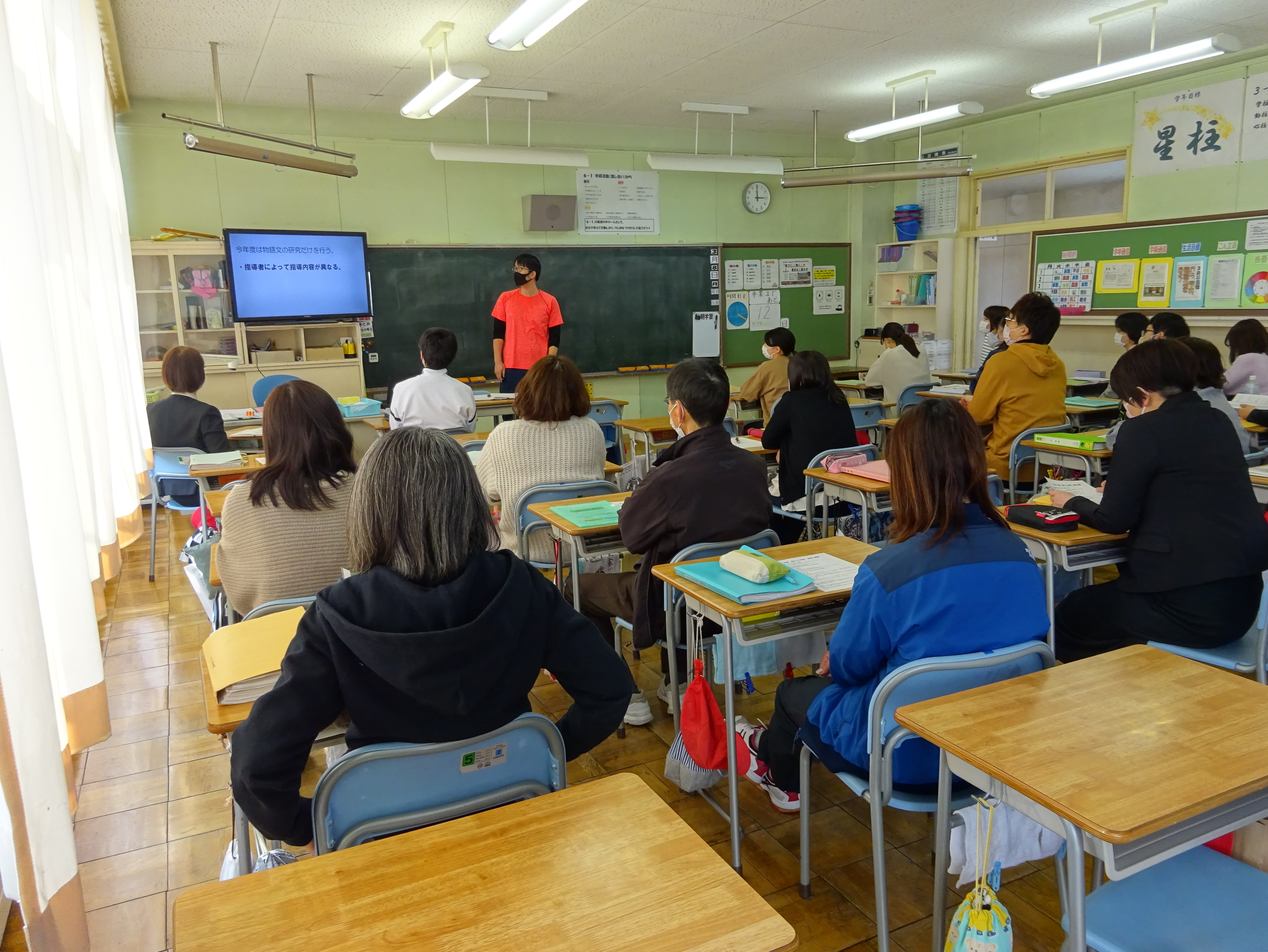 今年度の本校の研修を具現化する「提案授業」が行われました。感染症予防対策のため、教員を4グループに分け、教室に入って参観するグループと別室でモニターによる参観をするグループに分けて実施しました。国語科を研究教科に設定して3年目、子どもたちの読む力、書く力を身に付けるために、教員も日々授業力を磨いています。コロナ禍においても子どもたちと共に学び続ける教員集団でありたいと思います。