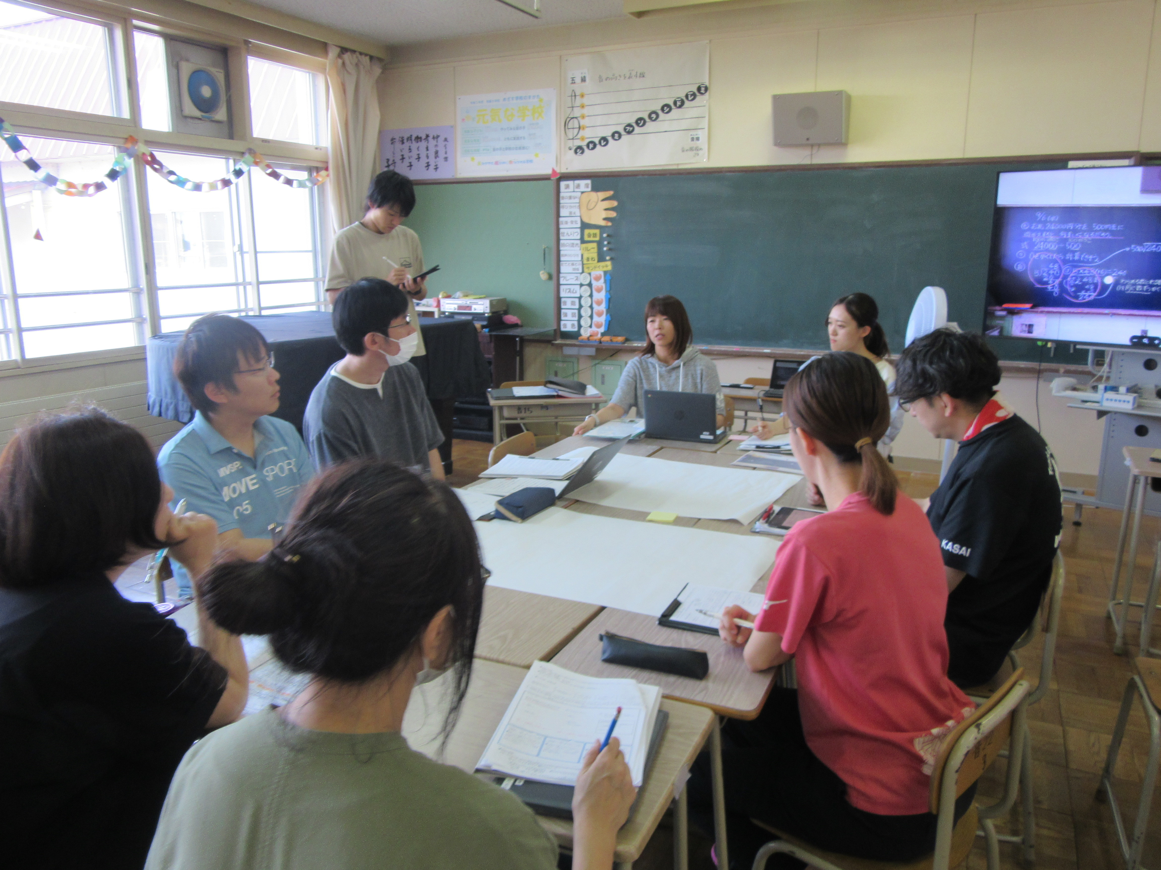 2学期が始まり,校内での授業研究が進んでいます。先日は,4年1組と5年2組で授業研を行いました。問題に一生懸命取り組んでいた子どもたち。その後の事後研究では,子どもたちが「問い」をもち,解決していくために,どんな支援や手立てが必要かを話し合いました。子どもたちがいきいきと学習に取り組むことができるように,授業研は続いていきます。