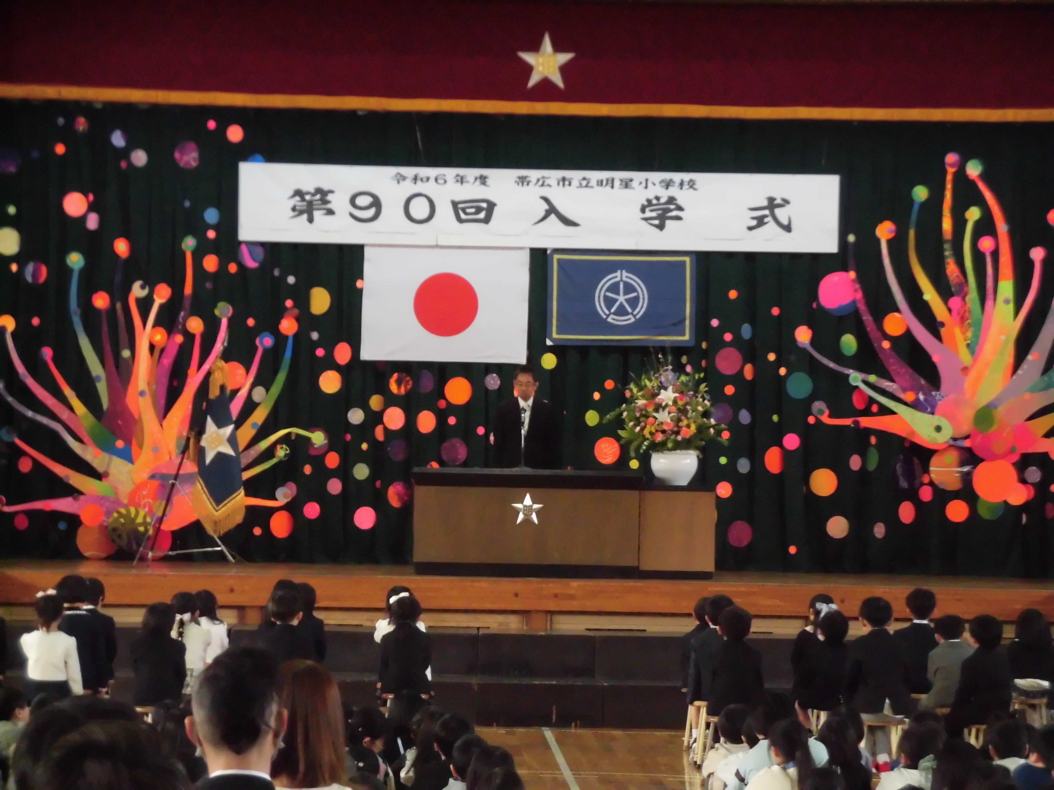 4月8日(月)、第90回目の入学式が行われました。おうちの方に手を引かれ、色とりどりのピカピカなランドセルを背負った1年生48名が明星小学校に仲間入りしました。お兄さんお姉さん方と一緒に多くのことを学んで、大きく成長してくれることを楽しみにしています。