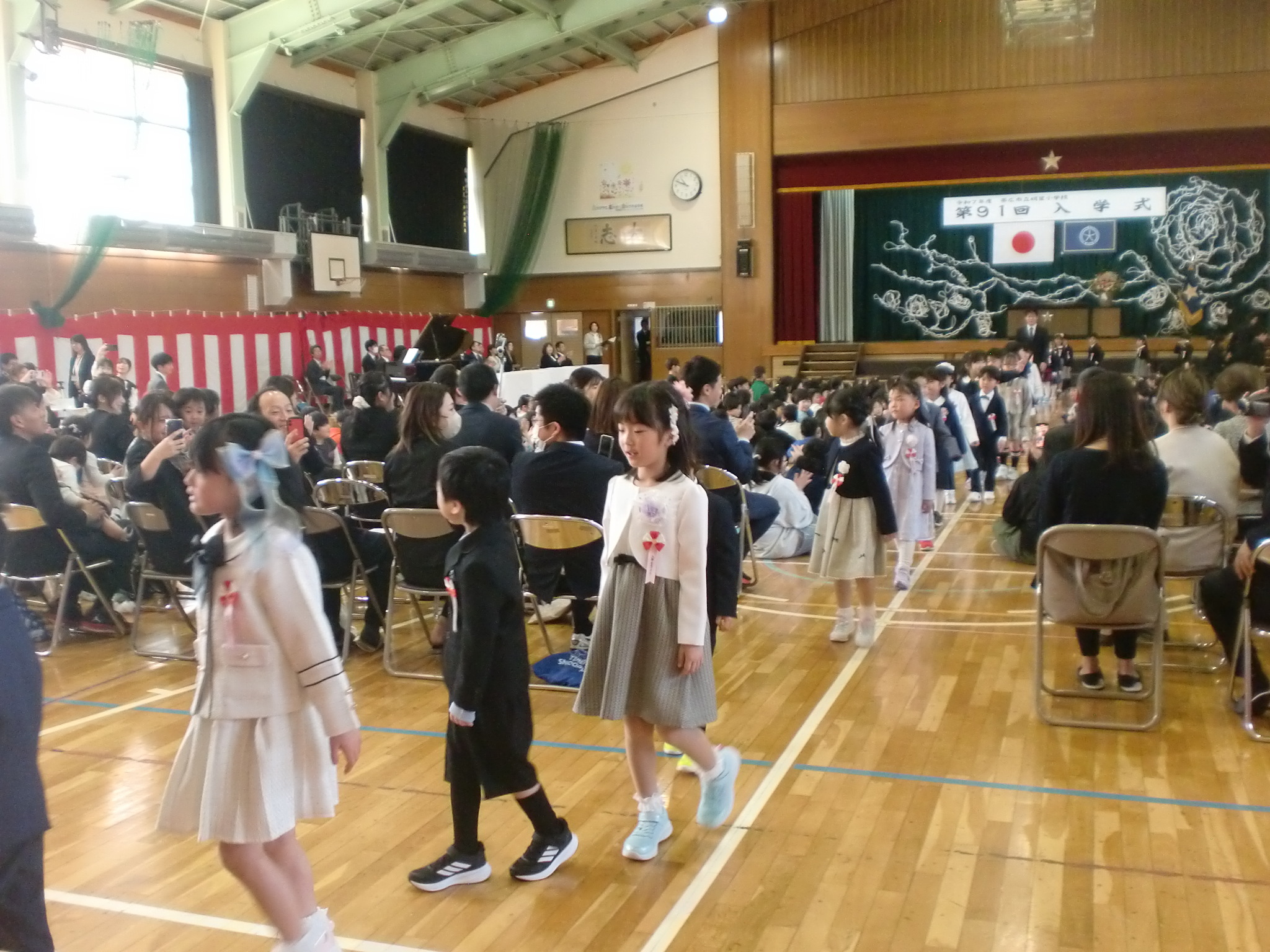 4月8日、第88回入学式が行われました。おうちの方に手を引かれ、ピカピカのランドセルを背負った1年生62名が明星小学校の仲間入りをしました。これから、多くのことを学んで大きく成長してくれることを楽しみにしています。